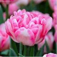 Именно так можно охарактеризовать тюльпаны Фокстрот, относящиеся к махровому типу. Расцветающие в середине весны, они дарят окружающим невероятно нежные бутоны, которые, расцветая, достигают 12-15 см в обхвате! Махровые лепестки красавицы Фокстрот завораживают своим удивительным окрасом. Светло-розовые бутоны украшены широкими мазками белоснежного цвета. Смотришь на эти цветы – и кажется, что искусный художник на славу потрудился над ними.